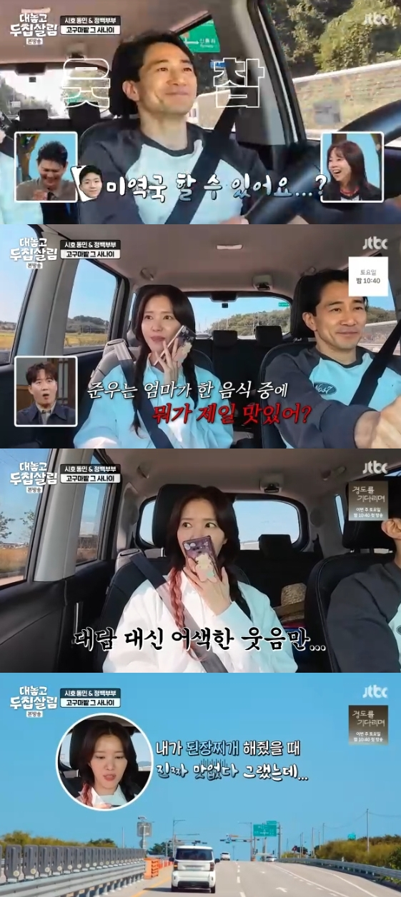 이후 정시아는 백도빈과 함께 고구마밭으로 향하는 차 안에서 아들에게 전화해 요리를 자랑했다. 그는 "엄마가 오늘 미역국이랑 불고기 했다"라고 말하자 아들은 "미역국 할 수 있어요? 맛있어요?"라고 되물었다.