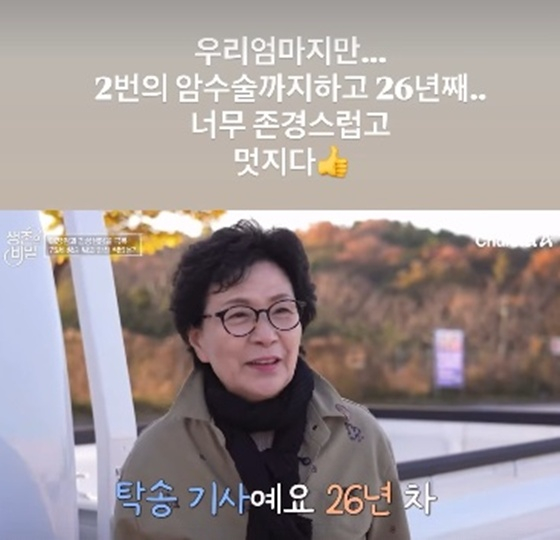이어 그는 "우리 엄마지만 2번의 암 수술까지 하고 26년째, 너무 존경스럽고 멋지다"고 엄지를 치켜세웠다.