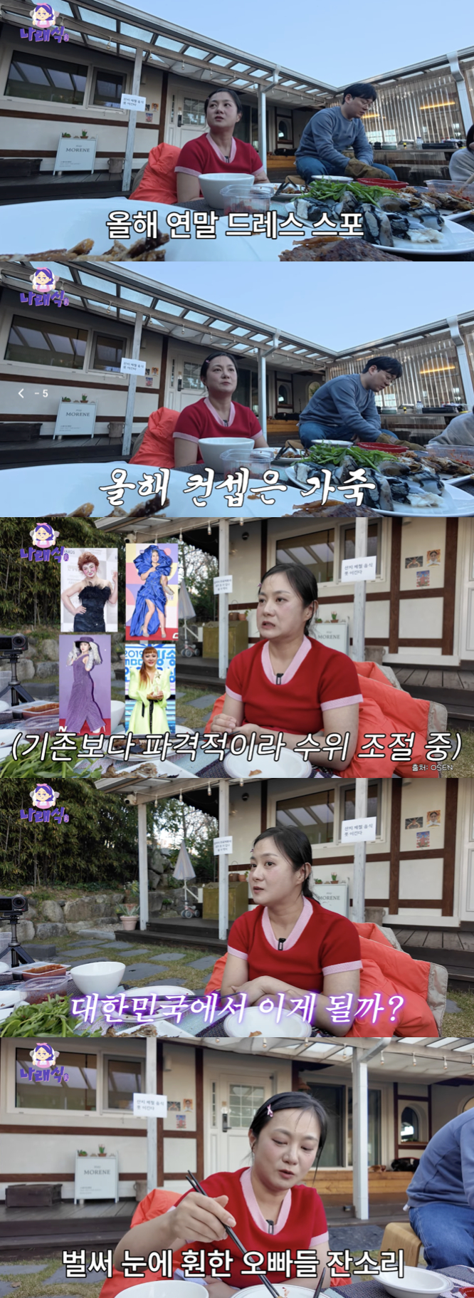 여행 중 박나래는 올해 연예대상에서 입을 드레스를 직접 스포했다. 그는 "올해는 가죽이다. 지금 수위 조절을 하고 있다"라며 "'대한민국에서 이게 될까?' 싶은 정도다"라고 말해 기대를 불러올렸다.