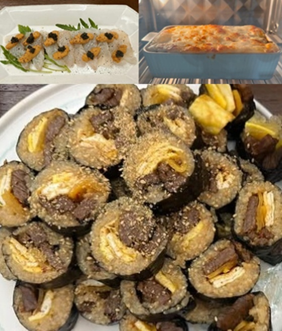 공개된 사진 속에는 오븐 안에 있는 치즈가 가득 올라간 음식 사진이 담겼다. 이외에도 김밥 등 수준급 요리 실력을 뽐내 눈길을 끌었다.