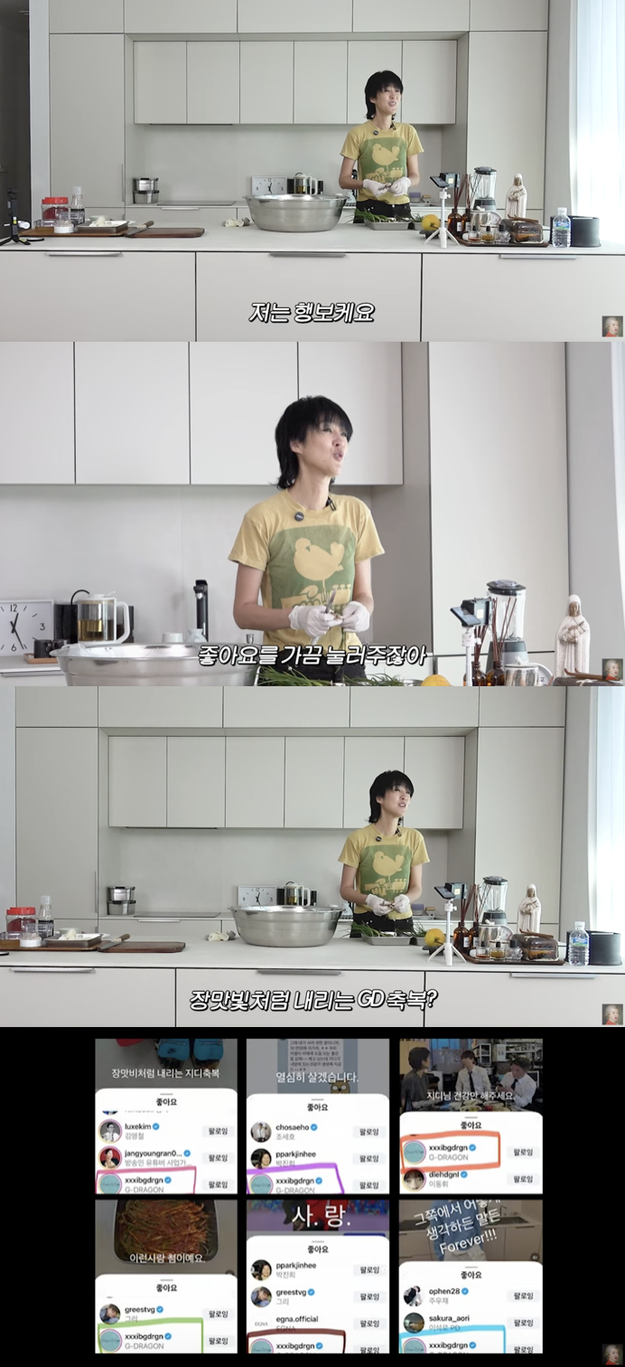 이어 "GD가 제 인스타그램 와서 좋아요를 눌러준다. 장맛비처럼 내리는 GD의 축복"이라며 남다른 팬심을 드러냈다.