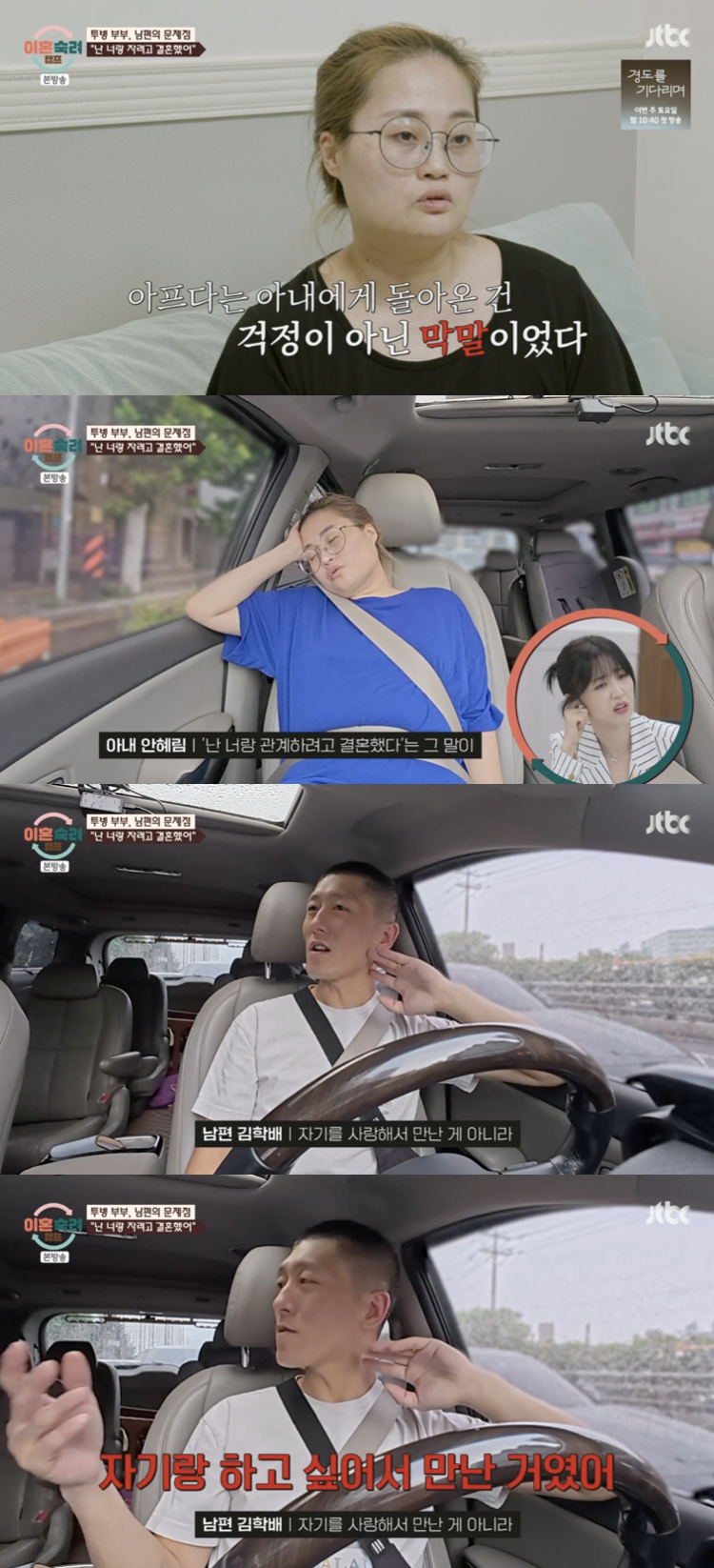 4일 방송된 JTBC '이혼숙려캠프' 65회에서는 '투병 부부' 남편의 발언과 태도가 집중 조명됐다.