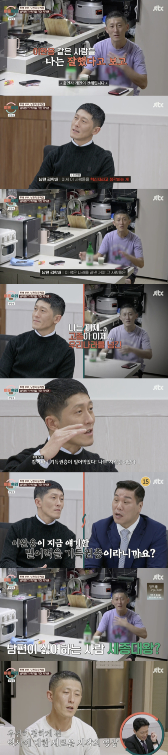 그러나 남편은 물러서지 않고 "기득권에도 파가 있을 거 아니냐. 이완용은 나라를 발전시키려는 기득권이었다"라고 주장하며 궤변에 가까운 논리를 이어갔다.
