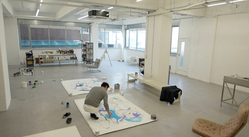 곧이어 도착한 작업실에서 그는 본격적인 '작가 모드'를 가동한다. 특히 '백바지'를 입고 캔버스 앞에 서는 파격 스타일링으로 눈길을 끈다. 그는 옷에 얼룩이 묻는 것조차 개의치 않고 음악과 하나 되어 무아지경으로 붓질을 이어간다. 아침의 다정했던 아빠와는 또 다른 '본업 천재'의 모습으로 시선을 사로잡는다.