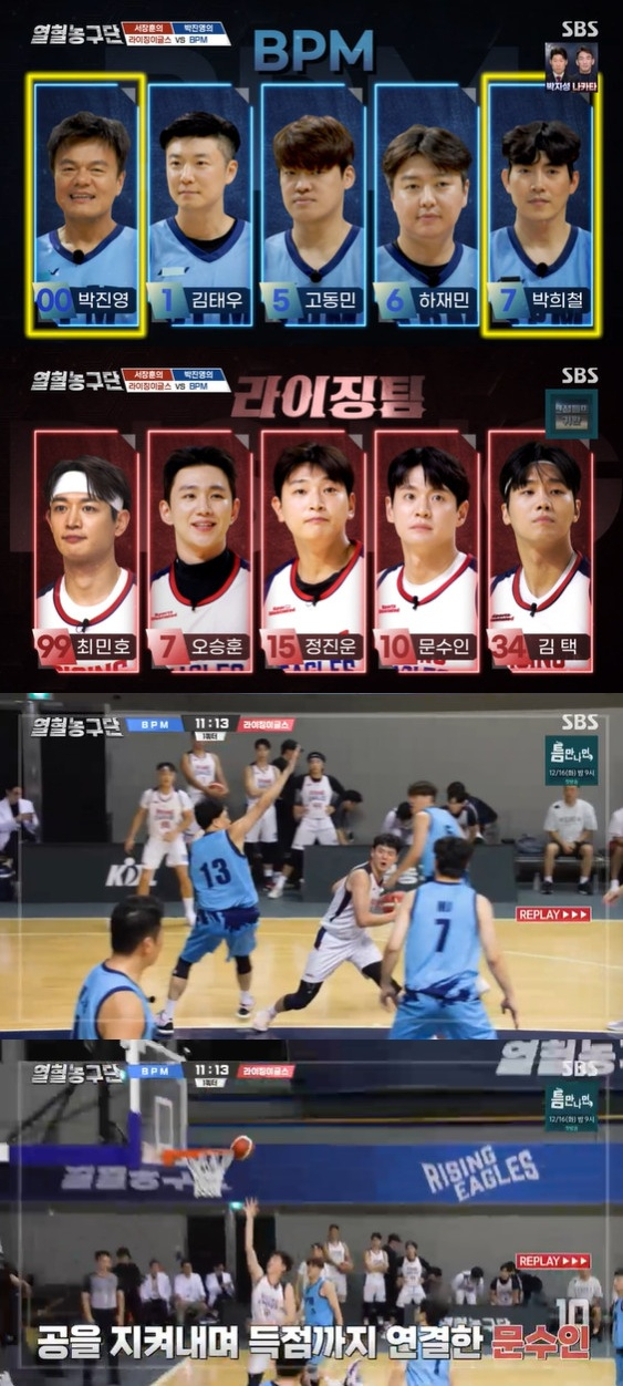 6일 오후 방송된 SBS '열혈농구단' 2회에서는 박진영이 단장으로 이끄는 'BPM팀'과의 대결이 그려졌다.