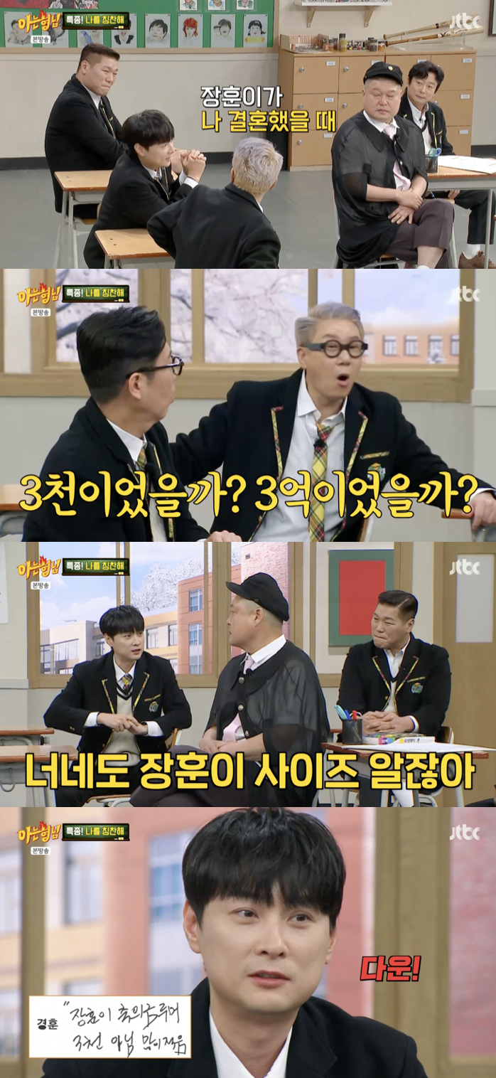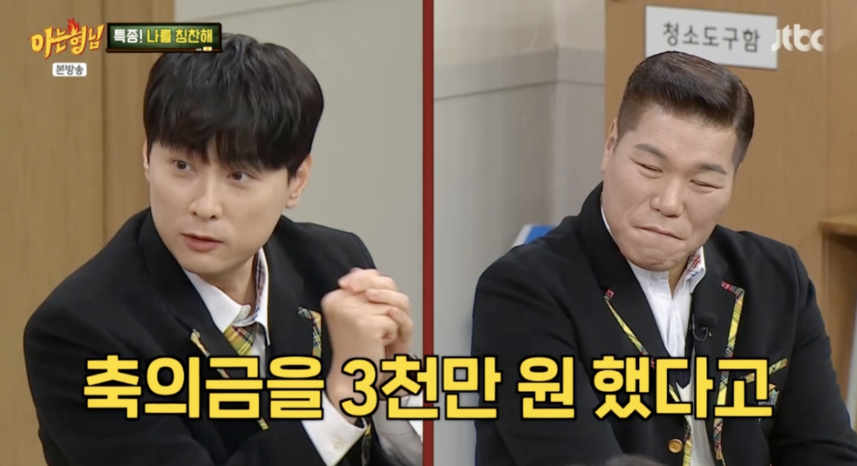 6일 방송된 JTBC 예능 프로그램 '아는 형님' 510회에서는 민경훈이 서장훈이 자신의 결혼식에 3천만 원의 축의금을 냈다는 소문을 바로잡는 모습이 공개됐다.