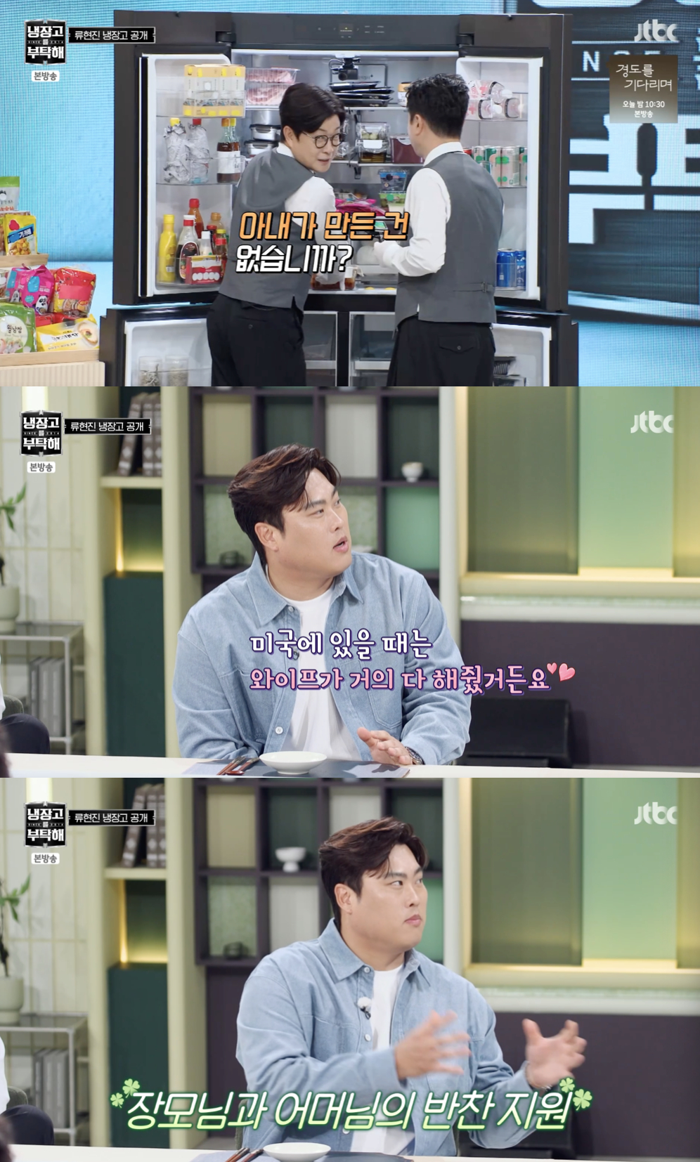 이날 방송에서는 류현진의 냉장고도 공개됐다. 미국 생활 동안에는 아내 배지현 전 아나운서가 대부분의 식사를 챙겼지만, 한국에 돌아온 뒤로는 부모님과 장모님이 다양한 반찬을 보내주고 있다고 설명했다.