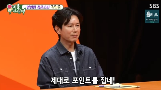 신동엽이 "본의 아니게 '미우새'에 죄송한 일이 있다더라"라고 운을 떼자 김종민은 "'미우새'랑 각별하다. 제가 '미우새'에 고정 게스트로 출연하다가 '미운 남의 새끼'에 첫 번째로 출연했다"라고 입을 열었다.
