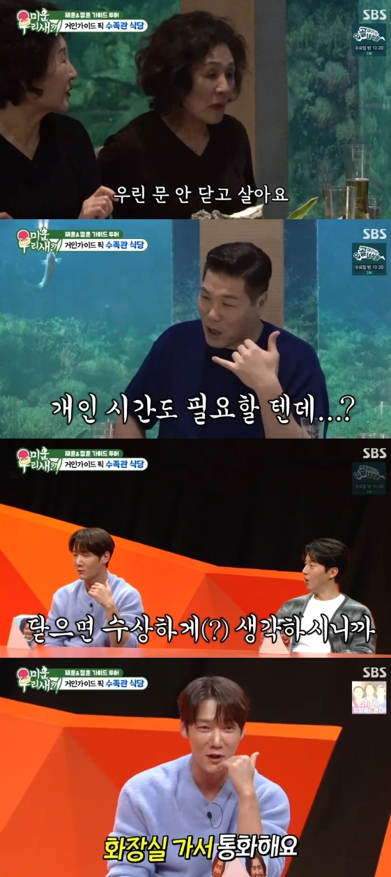 이에 최진혁 어머니가 "우리는 문 안 닫고 산다"라고 답하자 서장훈은 "문 닫고 개인적인 통화를 할 수도 있지 않냐"라고 의아함을 드러냈다.