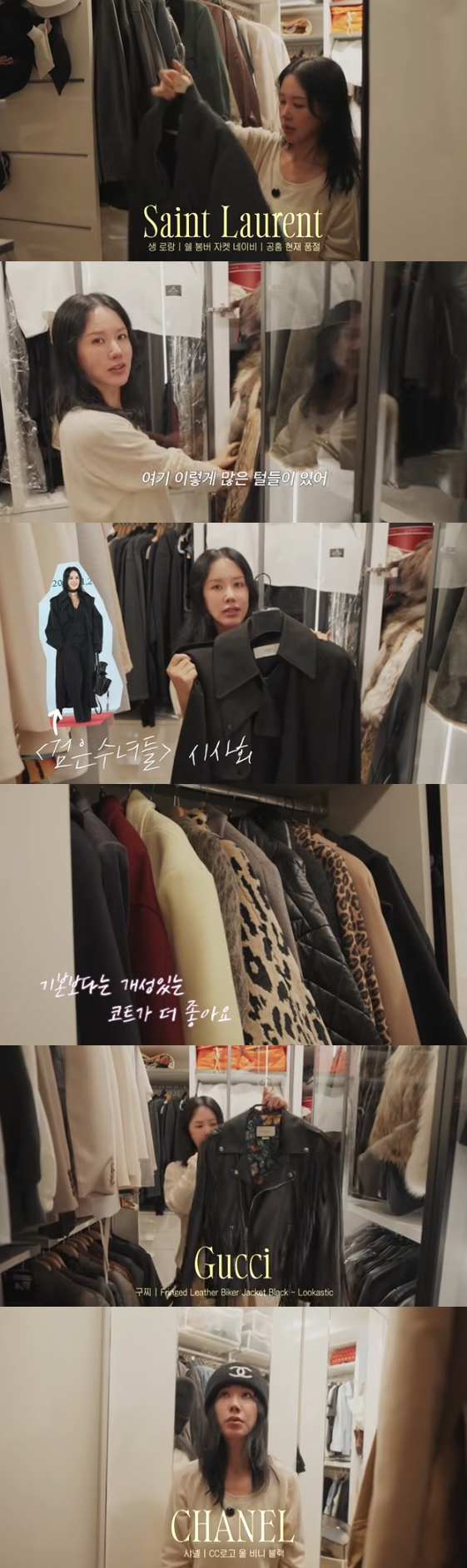 배우 엄정화가 명품 옷이 가득한 겨울 옷장을 공개했다.