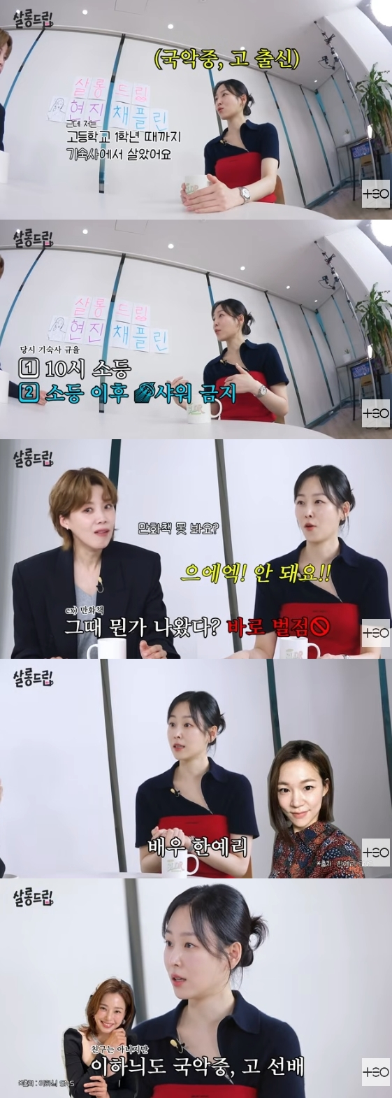 이어 "불시 검문도 했다. 갑자기 뒤지는데 만화책이 나오면 벌점이 있다. 벌점이 차면 퇴소다. 저도 통학이 불가능한 거리여서 (뭔가 걸리면) 죽어라 빌거나 만화책 보고 창문 아래로 봉지봉지 실을 묶어서 내렸다"라고 밝혀 모두를 폭소케 했다.