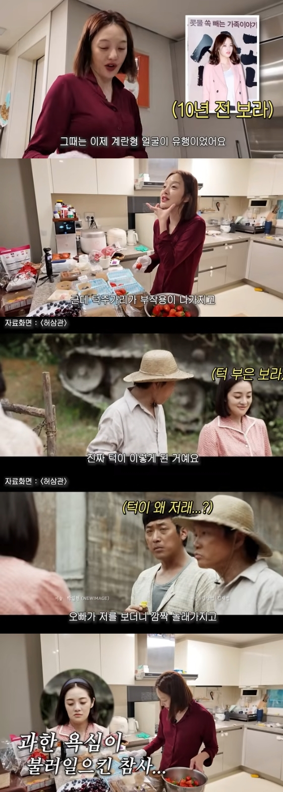 배우 황보라가 턱 필러 부작용을 고백했다.