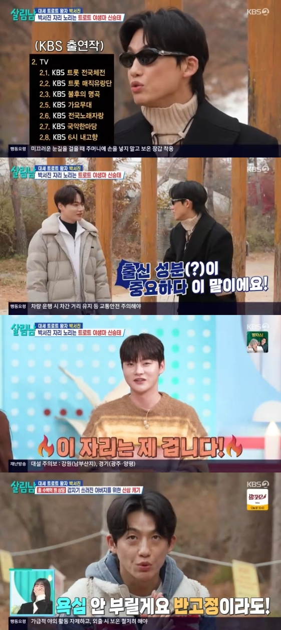 가수 박서진이 자신의 자리를 노리는 신승태와 살벌한 기싸움을 벌였다.