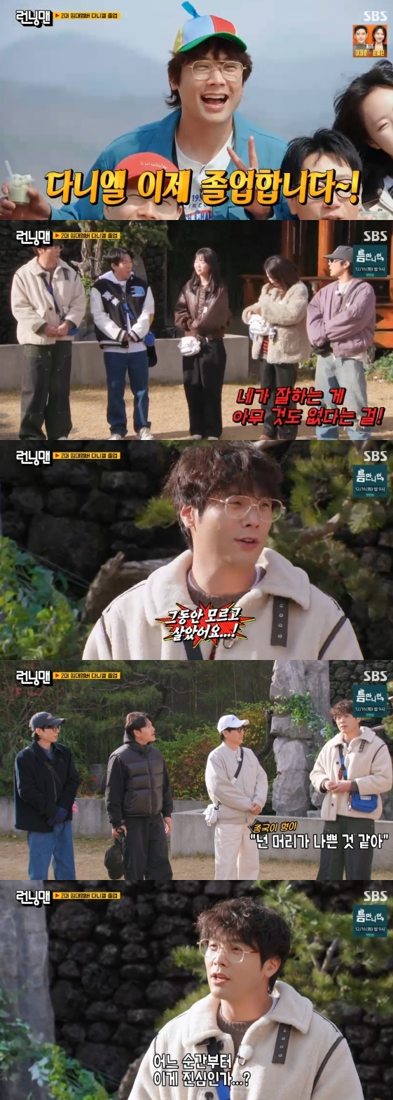 최다니엘은 "전 모르고 살았다. 중국이 형이 '너는 머리가 나쁜 것 같아'라고 하셨는데 장난인 줄 알았다. 어느 순간부터 이게 진심인가 싶더라"라며 "예은이가 '선배님, 눈치 없어요'하는 게 장난인 줄 알았다. 40년 동안 저는 모르고 살았다"라고 토로했다.
