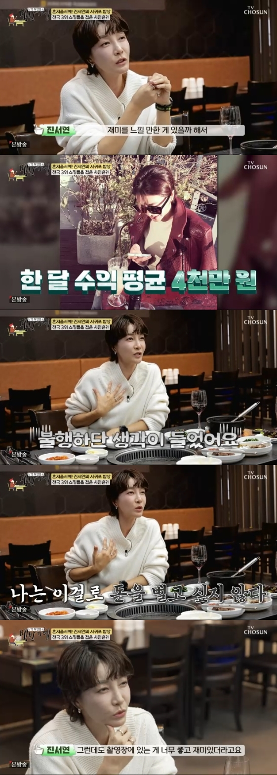 배우 진서연이 월 매출 4천만원을 기록하던 쇼핑몰을 버리고 연기자의 길을 택한 이유를 공개했다.