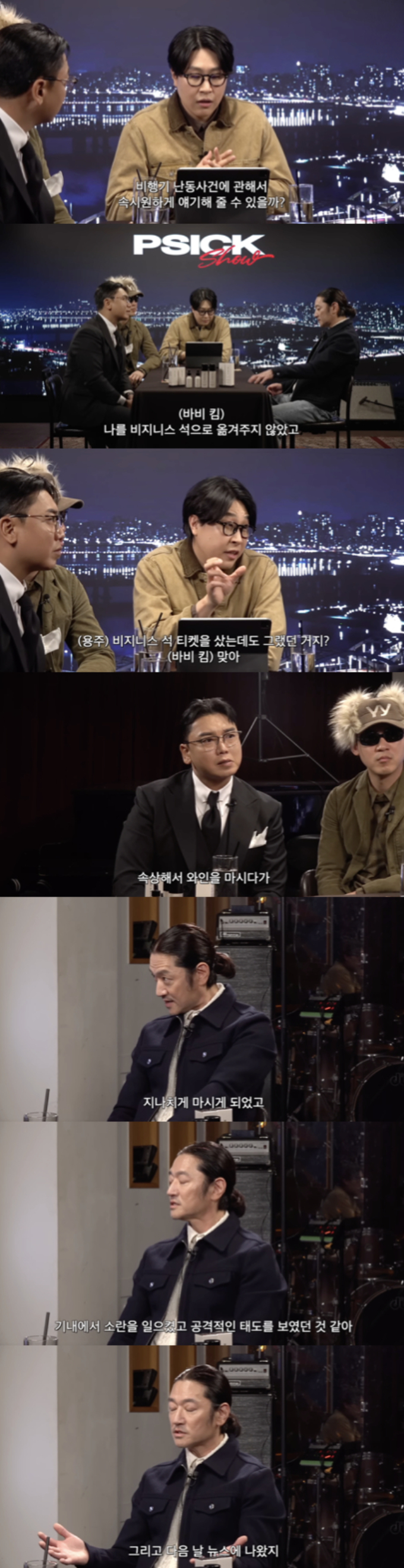 대화 도중 MC들은 바비킴의 과거 비행기 난동 사건을 언급했고, 바비킴은 당시 상황을 비교적 담담하게 설명했다. 그는 "요약하자면 나를 비즈니스석으로 옮겨주지 않았다"라며 "비즈니스티켓을 샀는데도 이코노미 석에 앉혀주더라"라고 말했다.
