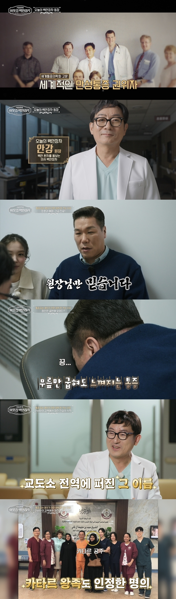 17일 방송되는 EBS '서장훈의 이웃집 백만장자'(이하 '이웃집 백만장자')에서는 세계 통증의학계를 사로잡은 '만성통증 권위자' 안강이 출연해 한 편의 드라마 같은 파란만장 인생 서사를 공개한다. 세계통증의학회 고문이기도 한 안강은 지난 2007년 EBS '명의' 만성통증 편 주인공으로 선정되며 대중에게 이름을 알렸다. 그의 명성은 국내를 넘어 해외에서도 이미 정평이 나 있다. 특히 카타르 공주를 비롯한 중동 왕족과 고위 관료, 사업가들이 입소문을 타고 찾아올 정도다. 그런데 뜻밖에도 그 출발점은 "리비아의 감옥에서 시작됐다"고 밝혀 의문을 자아낸다. 중동 의료계가 주목한 'K-닥터' 안강, 그 전설의 시작과 인생의 굴곡은 '이웃집 백만장자'에서 자세히 공개된다.