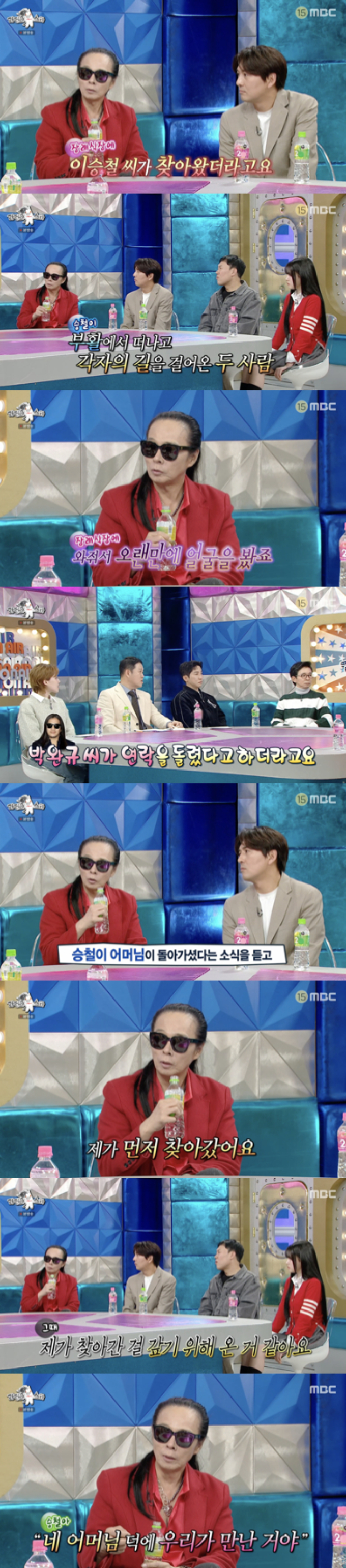김태원은 재회의 배경에 또 다른 사연이 있다고 밝혔다. 그는 "결정적인 건 5~6년 전에 이승철 어머니가 돌아가셨다는 이야기를 듣고 제가 불쑥 찾아갔다"라며, "그때 제가 찾아간 걸 갚기 위해 온 것 같다. 저한테 이런 말을 던졌다"라고 말했다.