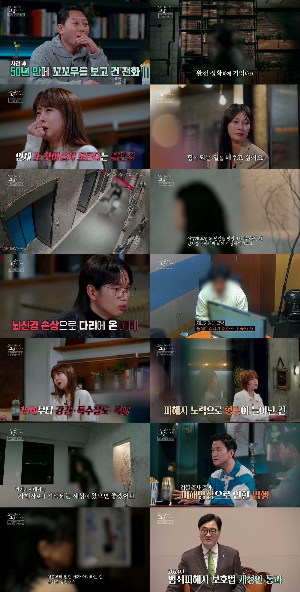 그후 진주씨를 중심으로 한 피해자들의 연대는 '범죄피해자에 대한 배상 확대'로 연결됐다. 2026년 1월 1일부터 '범죄 피해 구조금 제도'가 시행되는 것. 피해자들의 용기 있는 목소리는 세상을 바꿀 힘이 된다는 것을 확인시켰다. 양파는 "이렇게 목소리를 내줘서 큰 도움을 받고 있는 게 감사하다"고 했고, 안혜경과 정만식 역시 "연대가 이어져 더 나은 세상으로 나아가길 바란다"고 밝혔다.