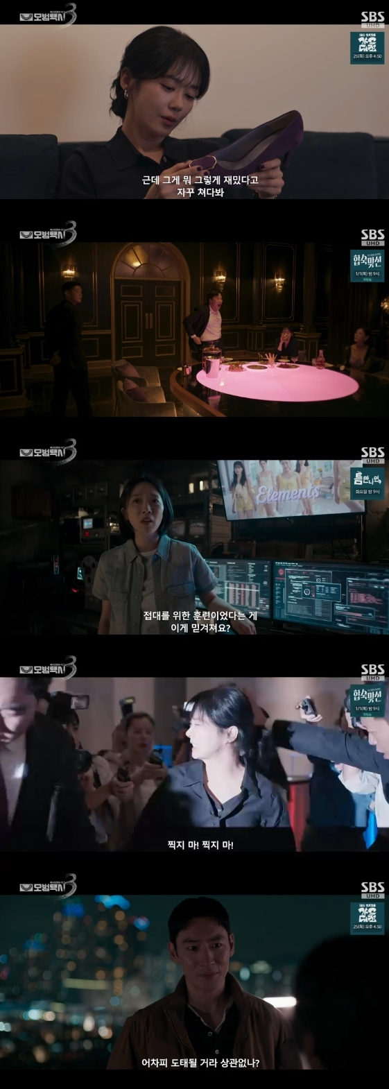 20일 방송된 SBS 금토 드라마 '모범택시3'에는 걸그룹 연습생에게 스폰서 만남을 강요하고 극단적 선택까지 이르게 한 연예 기획사 대표 강주리(장나라 분)를 참교육하기 위해 매니저로 위장 취업한 김도기(이제훈 분)의 모습이 그려졌다.