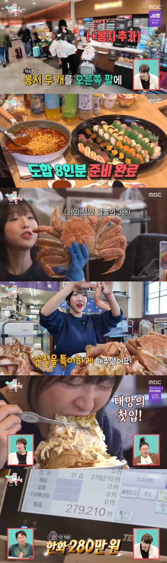 그는 북해도 특산물인 털게를 무려 10kg이나 주문해 시장을 발칵 뒤집었다. 그런가 하면 매니저의 도움을 받아 털게 속살을 산더미처럼 쌓은 뒤 한 입 가득 넣어 감탄을 자아냈다.