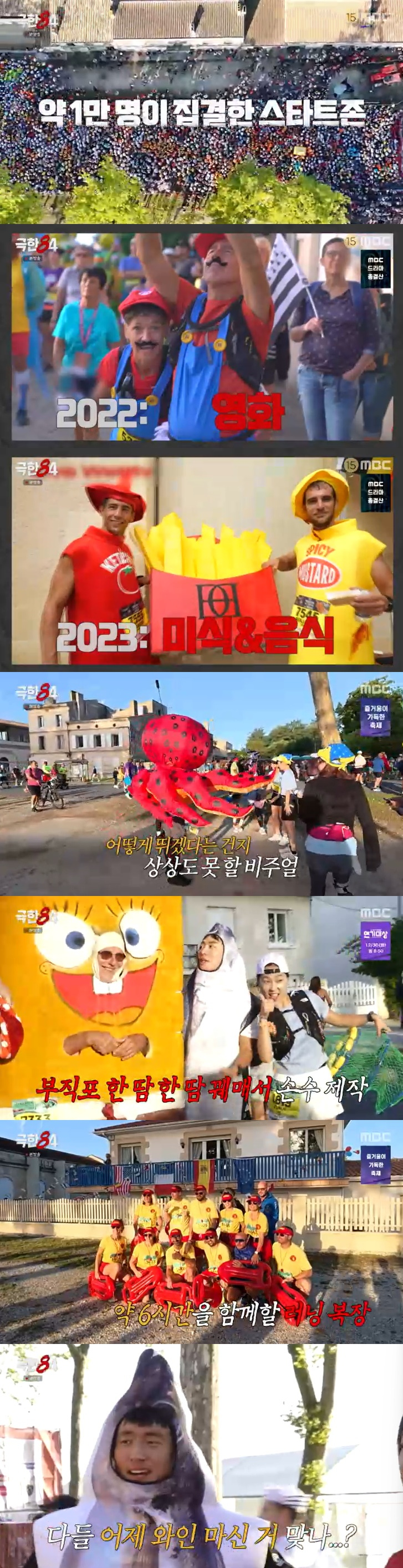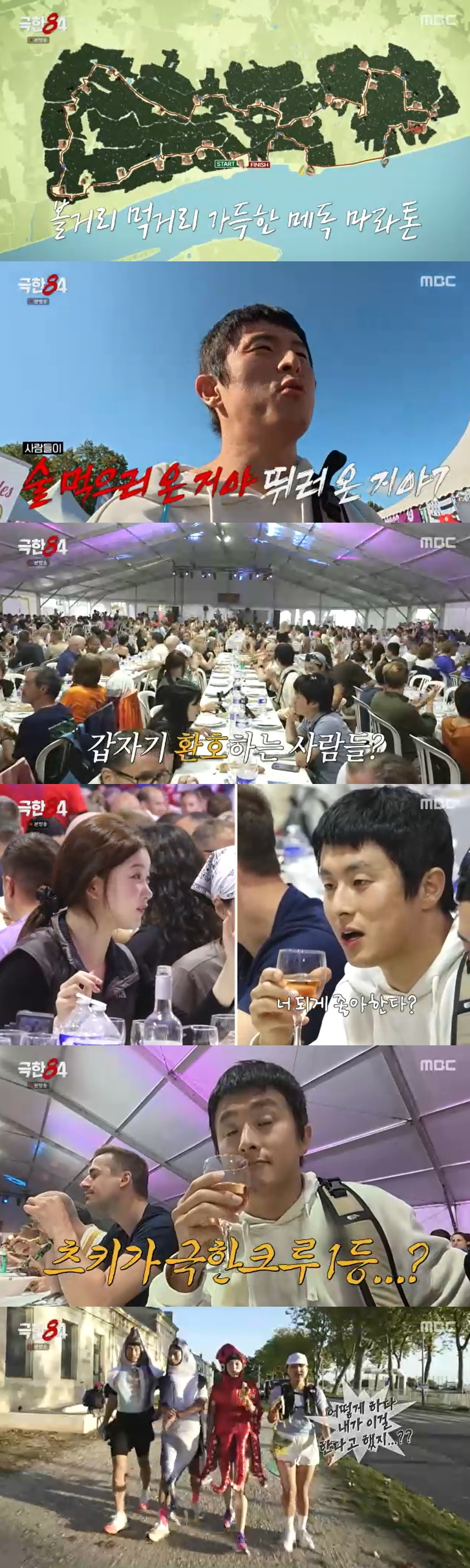 메독 마라톤은 40~50개의 와이너리를 지나야 했고, 와인 음수대들과 스테이크, 굴, 빵, 치즈, 아이스크림 등의 구역이 있었다. 벌써부터 와인 시음이 즐비한 지역 축제 분위기가 형성되자 기안84는 "사람들이 술 먹으러 온 거야? 뛰러 온 거야?"라며 신기해했다.