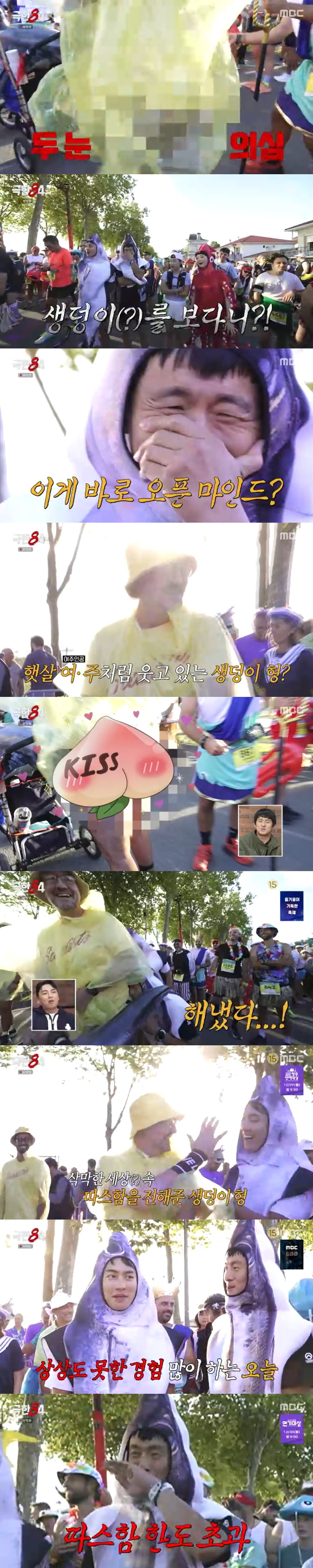 마라톤 당일, 마리오, 스펀지밥 등 다양한 코스프레가 등장했고, 이 가운데 엉덩이에 'Kiss me'를 쓰고 그대로 노출한 노인이 나타나 장내를 들썩이게 했다. 기안84는 "왓 더..."라며 놀라면서도 "이분도 리스펙해야 한다"라며 권화운과 함께 노인의 엉덩이에 뽀뽀했다.
