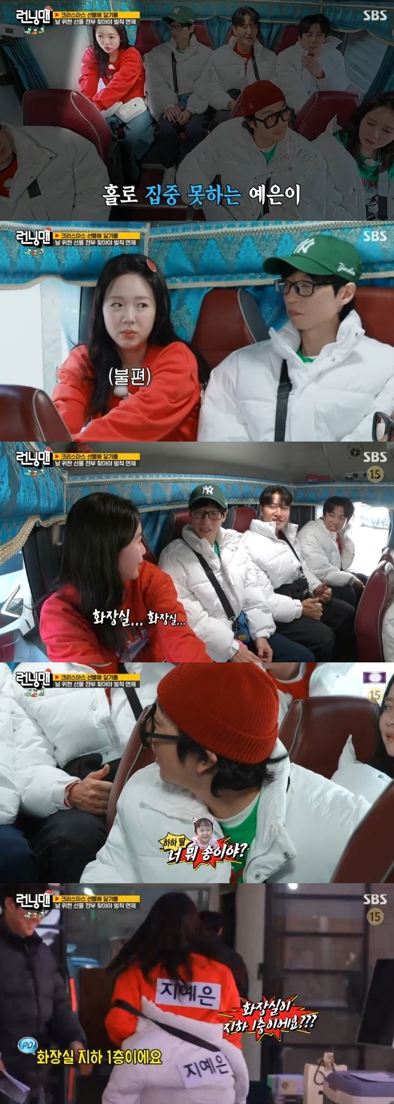 이날 지예은은 미션 장소로 이동하는 차 안에서 홀로 집중하지 못하며 안절부절못한 표정을 지었다. 지예은은 심상치 않은 분위기를 눈치챈 유재석이 이유를 묻자 "화장실 가고 싶다"라고 울상을 지었다.