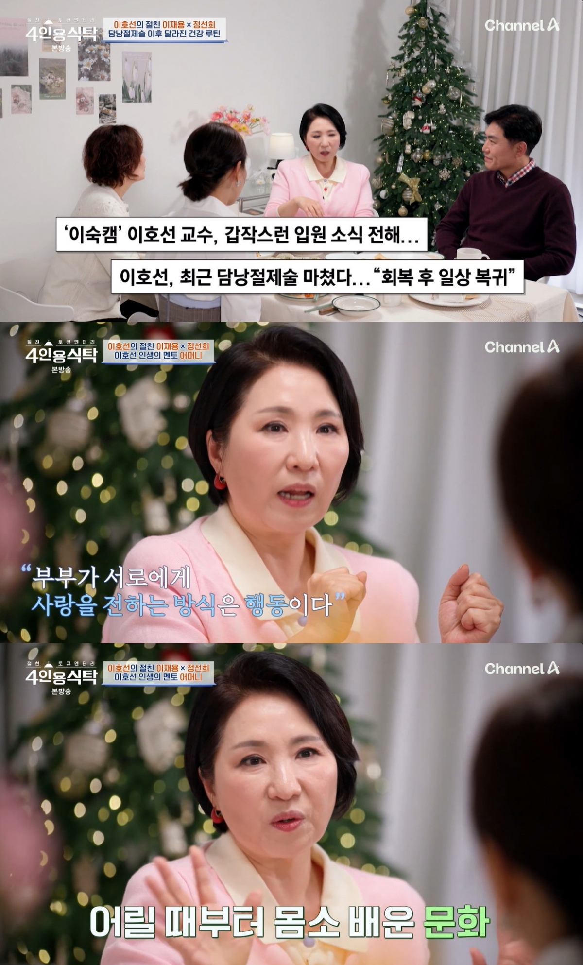 22일 방송된 채널A '절친 도큐멘터리 4인용식탁'에서는 이호선, 이재용, 정선희가 게스트로 출연했다.