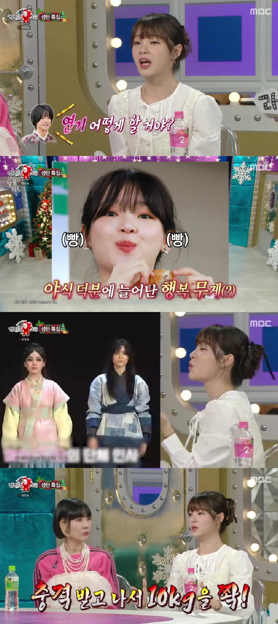 이어 "라미란 선배님만 알아봐 주셨는데 촬영 중에 살이 쪘었다. 그걸 보시고, '초록아. 옷을 바꿔 달라 그러지'라고 하시더라. 촬영 중 5kg이 쪘었다. 야식을 많이 먹었다. 아이돌은 음악방송 할 때만 몸매를 관리하면 된다. 근데 드라마는 1년을 찍으니까 유지가 안 되더라. 살이 쪘다가 빠졌다가 했다"고 밝혔다.