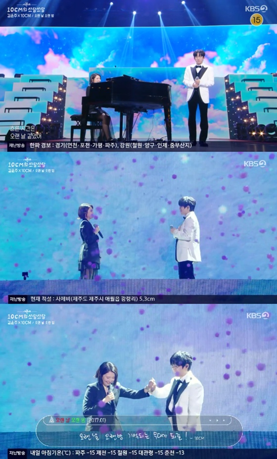 26일 오후 방송된 KBS 2TV 예능프로그램 '더 시즌즈 - 10CM 쓰담쓰담'에서는 옥상달빛 김윤주가 스페셜 스테이지를 꾸몄다.