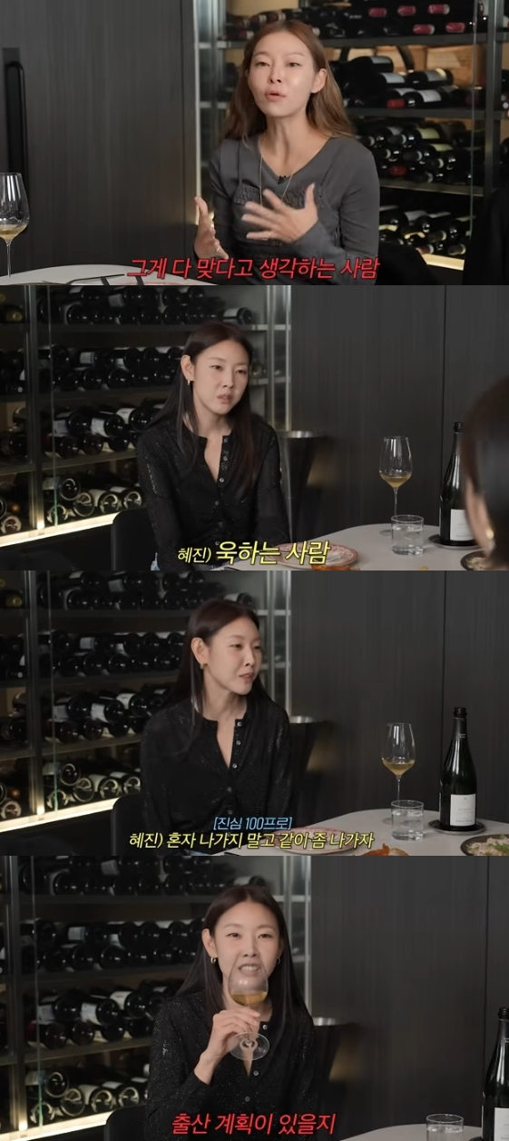 이에 한혜진은 "혼자 나가지 말고 같이 좀 나가자. 이럴 때 후배 덕 좀 보자"라고 너스레를 떨었다. 이어 "누가 아냐. 내년 이맘때 쯤 출산 계획이 있을지. 내년 안에 출산하려면 1, 2월 안에 승부를 봐야 한다"며 결연한 눈빛을 보내 웃음을 자아냈다.