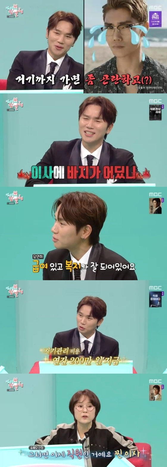 케이윌은 이사직의 혜택에 대해 "자기 관리비용으로 연간 200만원 지원해주고, 휴대폰 살 때도 50만원을 지원해 준다. 아직 못 받았고 앞으로도 받을 수 있을지 모르겠지만 결혼 지원금도 준다고 한다"라고 밝혀 모두의 부러움을 샀다.