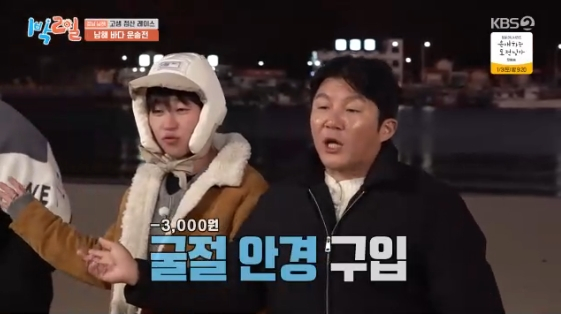28일 방송된 KBS 2TV 예능 프로그램 '1박 2일'에는 남해안을 따라 떠나는 '연말 고생 정산 레이스' 두 번째 이야기가 그려졌다.
