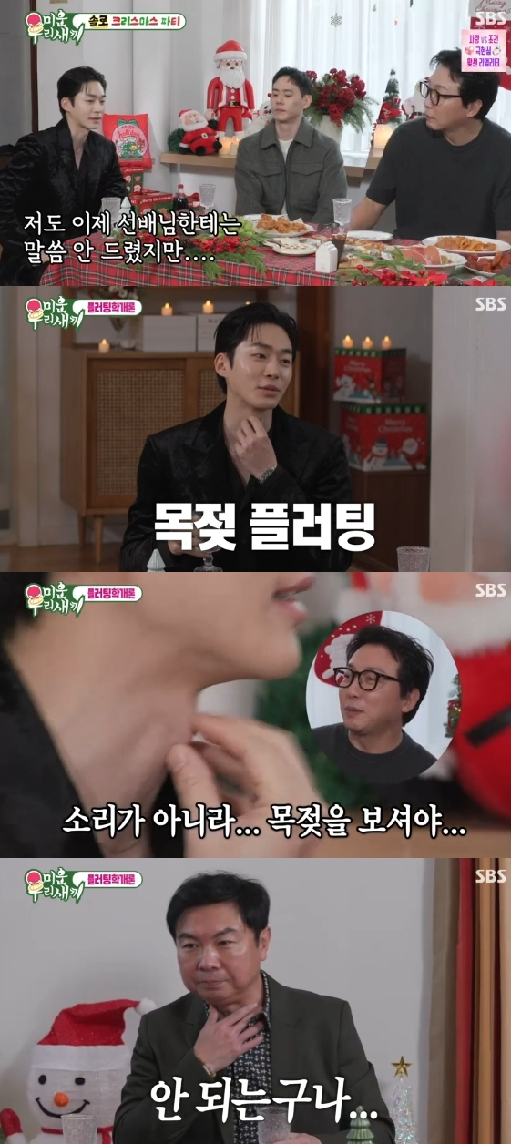 이를 보던 임원희는 목젖 플러팅을 따라 하려고 했으나 목젖이 보이지 않자 "안되는구나"라고 씁쓸한 표정을 지어 웃음을 안겼다.