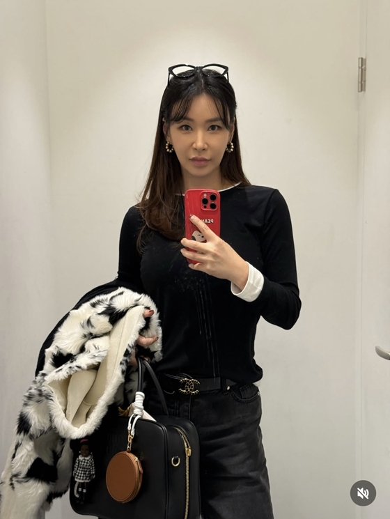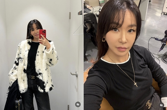 공개된 사진 속 배윤정은 화이트 퍼 재킷에 블랙 상하의를 맞춰 입고 셀카를 찍고 있다. 검은 뿔테 안경에 긴 생머리를 늘어뜨린 배윤정은 특유의 카리스마 넘치는 표정으로 시선을 압도했다.
