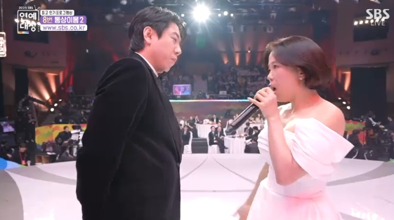 무대를 본 이수지는 "얼핏 보면 화사님이 보인다"라고 감탄했고, 정이랑은 "고소당할까 걱정된다. 연말에 너무 죄송하게 됐다"라고 고개를 숙였다.