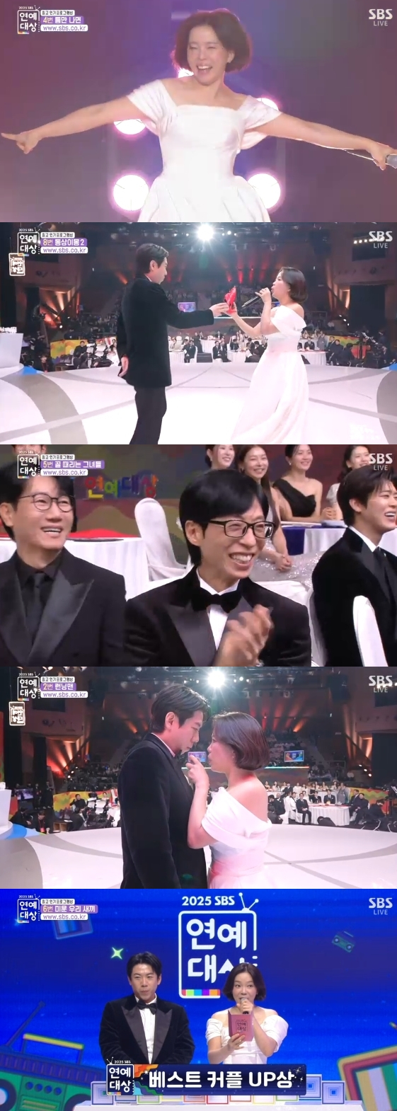 30일 서울 마포구 상암동 SBS 프리즘타워에서 생방송으로 열린 '2025 SBS 연예대상'에서는 전현무, 이수지, 차태현이 MC로 호흡을 맞춘 가운데 다채로운 시상이 이어졌다.