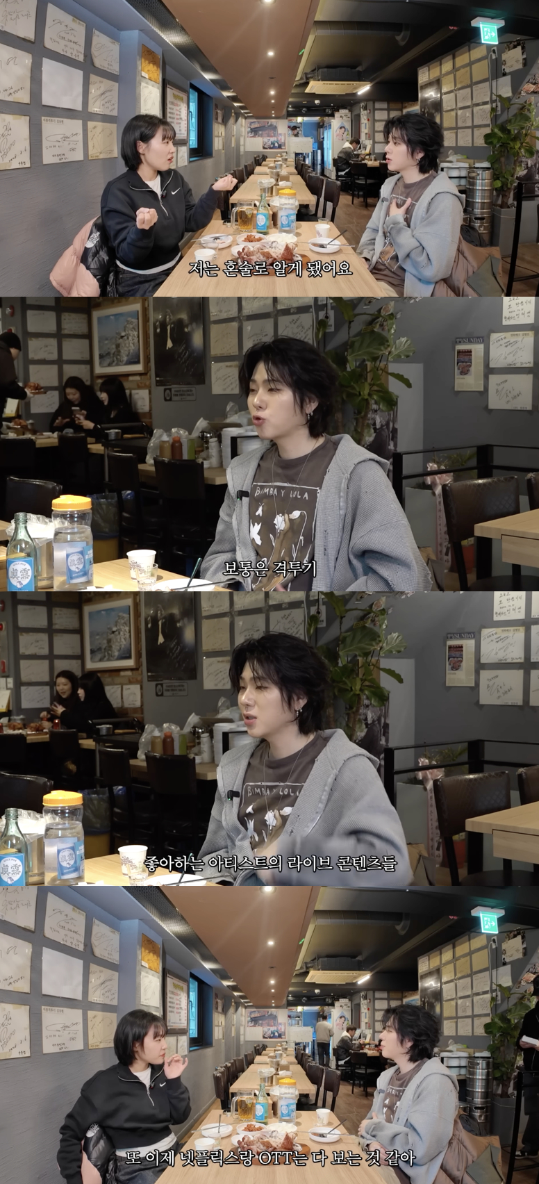 지코는 혼술과 함께 즐기는 콘텐츠도 공개했다. 그는 "좋아하는 영상이 시즌마다 다른데 보통은 격투기"라며 "좋아하는 아티스트의 라이브 콘텐츠도 보고, 넷플릭스랑 OTT는 거의 다 본다"고 덧붙였다.
