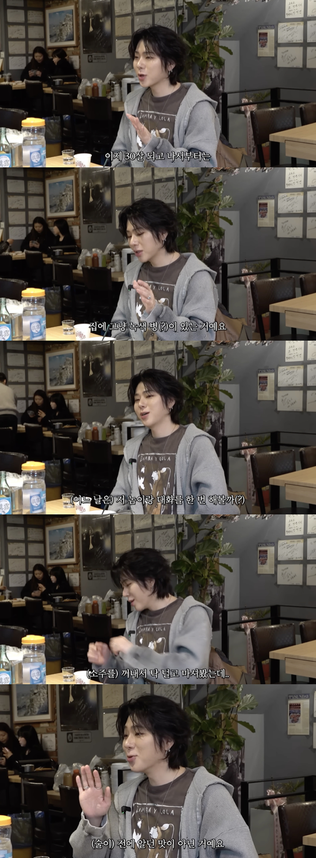 하지만 30대에 접어들며 변화가 찾아왔고 전했다. 그는 "30살이 되고 나서부터는 집에 그냥 녹색 병이 있더라. 친구들이 와서 마시고 남긴 거였다"며 "어느 날 '저놈과 대화를 해봐야겠다' 싶어서 꺼내 마셨는데, 전에 알던 맛이 아니더라. 쓰지 않고 달았다"고 회상했다.