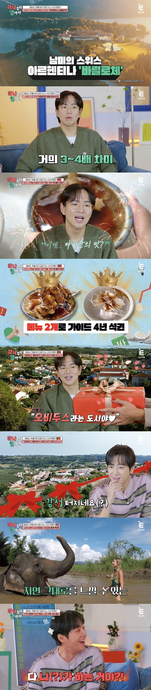 5일 오후 8시 방송되는 티캐스트 E채널 '하나부터 열까지'에서는 장성규, 이상엽이 '붐비는 핫플 NO! 요즘 뜨는 신상 여행지'를 주제로 유럽·아시아·남미·오세아니아를 아우르는 여행지들을 총망라해 공개하며 시청자들의 '2026년 여행 로드맵'을 완성한다. 여행 파트너 자존심을 건 두 MC의 설전도 초반부터 불이 붙는다. 장성규가 "같이 여행 가면 재미있을 것 같은 스타 2위에 뽑힌 적 있다"며 자신감을 드러내자, 이상엽은 "같이 여행 가고 싶은 하이틴 스타 1위에 오른 적 있다"고 맞받아치며 순위 전쟁의 서막을 알린다.