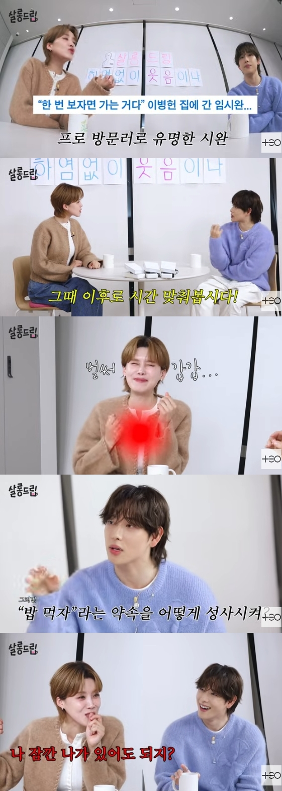 그러자 장도연은 "명확하게 얘기하는 거냐"며 답답한 마음에 주먹으로 가슴을 쳤고, 임시완은 "밥 먹자는 약속을 어떻게 성사시키냐. 밥 약속 한 번 잡아보자. 친해진 김에 누나 집 한 번 방문해 볼까요?"라고 제안했다.
