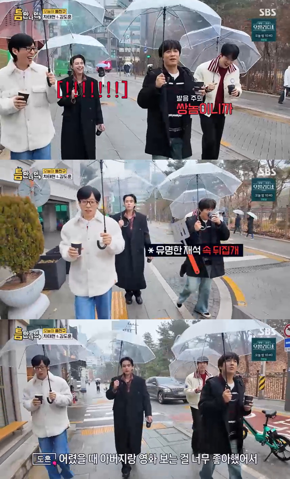 '틈만 나면' 배우 차태현이 유재석에게 장난쳤다.