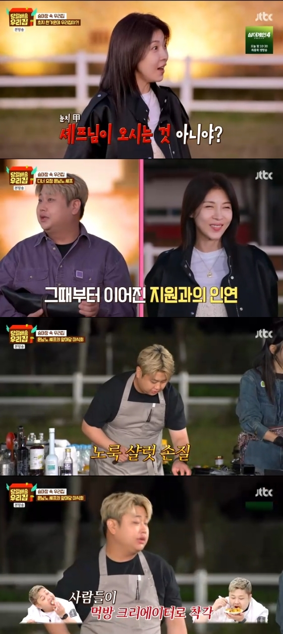 모두가 특급 셰프의 방문을 기대하는 가운데 '흑백요리사'에서 '요리하는 돌아이'로 이름을 알린 윤남노 셰프가 등장해 시선을 모았다. 특히 과거 '냉장고를 부탁해'를 통해 윤남노 셰프와 인연을 맺은 하지원은 반가움을 감추지 못했다. 그는 "그때 너무 맛있어서 윤남노 셰프를 뽑았다"라고 요리 실력을 추켜세웠다.