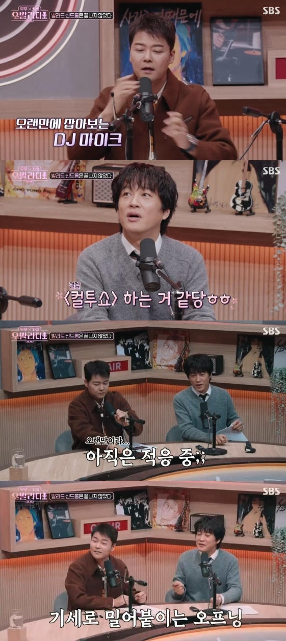 두 사람은 오랜만에 앉은 DJ석에 어색함도 잠시, 함께 듀엣으로 불협화음(?)을 선보이며 분위기를 녹였다.