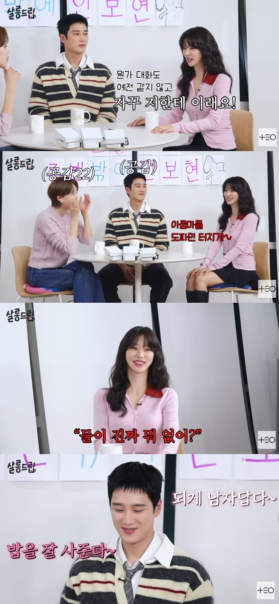 이에 안보현도 격하게 공감했다. 이주빈은 "뭐 없는데 뭐라도 얘기해 줘야 할 거 같았다. 이 친구들이 설렐 만한 얘기를 해준다. 밥을 잘 사준다거나 되게 남자답다, 사람 잘 챙긴다, 매너 좋다 이런 얘기를 해주면 '좋아하는 거 아니냐'고 물어본다"고 말해 웃음을 자아냈다.