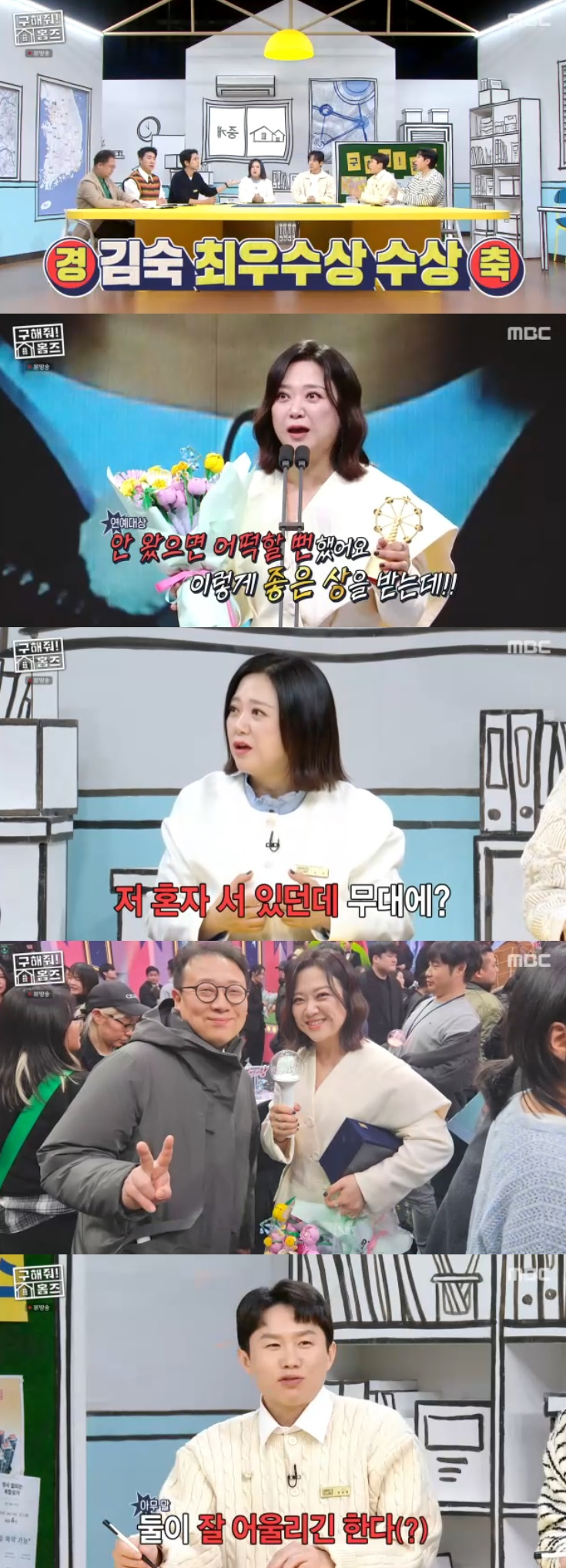 양세찬은 "오늘 녹화가 2025년 12월 31일 마지막 날이다"라고 했고, 주우재는 지난 연말을 떠올리면서 "진짜 큰 일이 있었다"라며 '2025 MBC 방송연예대상'에서 김숙의 최우수상을 축하했다.