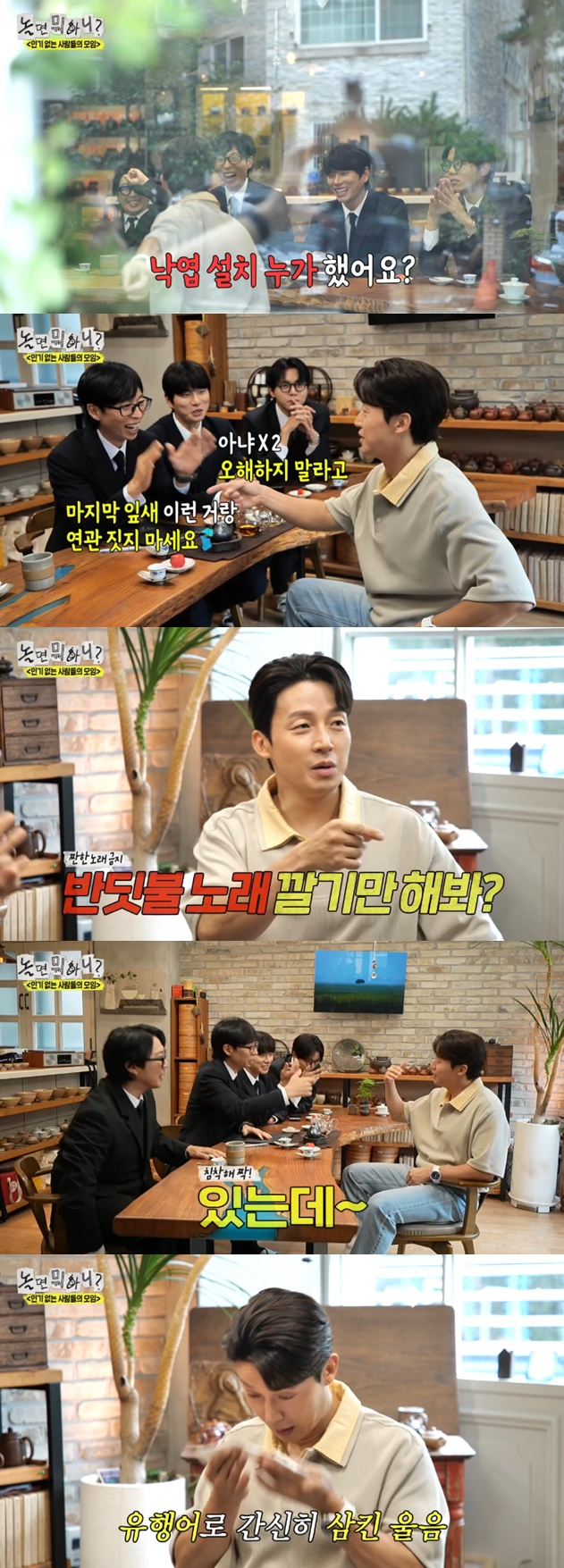 허경환이 '놀뭐'에 얼굴을 비추기 시작한 건 지난해 7월 방송된 '인기 없는 사람들의 모임'(이하 '인사모') 특집 부터였다. 대중적으로는 얼굴이 알려졌지만 그에 비해 뚜렷한 팬층이나 인기는 없는 이들끼리 모이는 특집이었다. 한동안 TV 출연이 없던 허경환은 이 특집에서 '나뭇잎도 그를 억까하는 예능신'이 내려 큰 웃음을 선사했다.