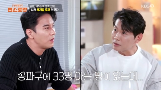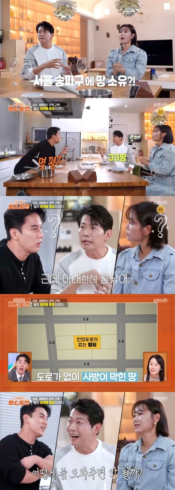 그러면서 "아내한테 혼났다. 사실 맹지다. 진입로가 없다. 그 일대가 통으로 개발되지 않는 한 어렵다"라고 덧붙여 현장을 폭소케 했다.