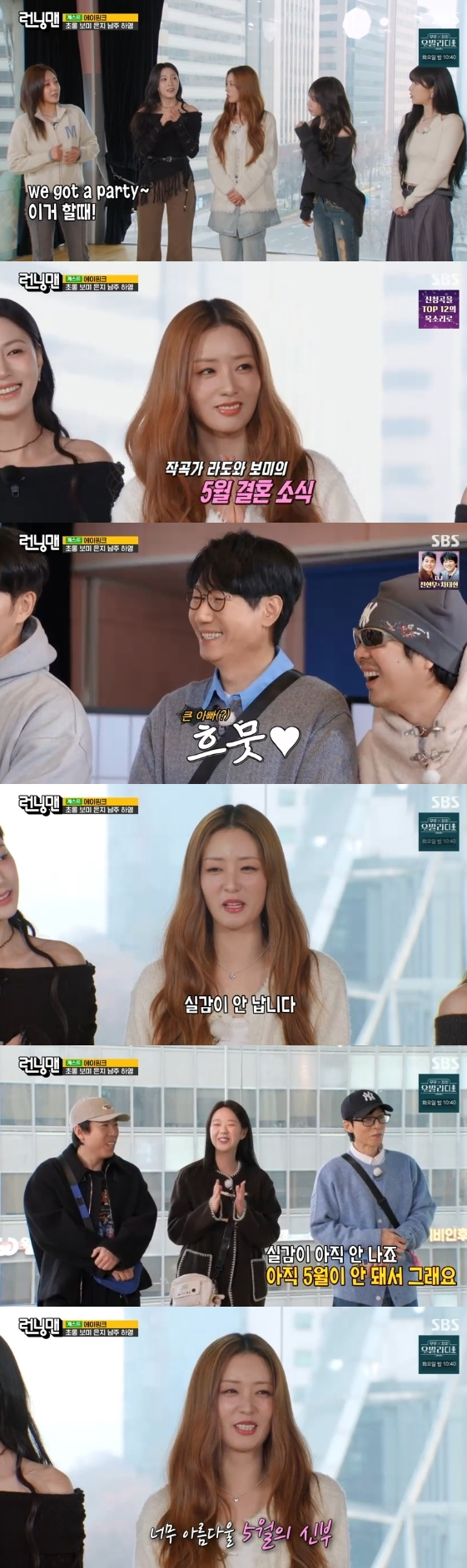 이때 유재석은 "좋은 소식이 있다"며 오는 5월 작곡가 라도와 결혼하는 윤보미의 결혼 소식을 알렸다. 이에 윤보미는 "실감이 안 난다"며 쑥스러운 표정을 지었고, 유재석은 "실감이 안 나지? 아직 5월이 안 돼서 그렇다. 5월이 되면 실감 난다"라고 경험자다운 조언을 건넸다.